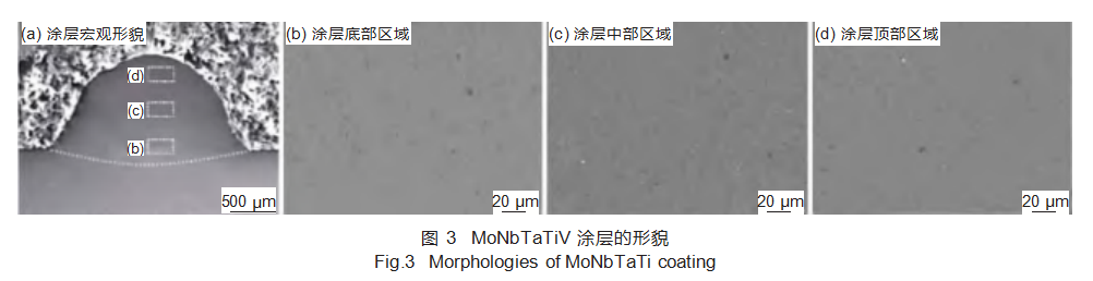 (1) The coating phase consists primarily of a BCC solid solution and a small amount of the intermetallic compound Fe₂Ti. The coating microstructure is mainly composed of columnar dendrites and equiaxed grains.